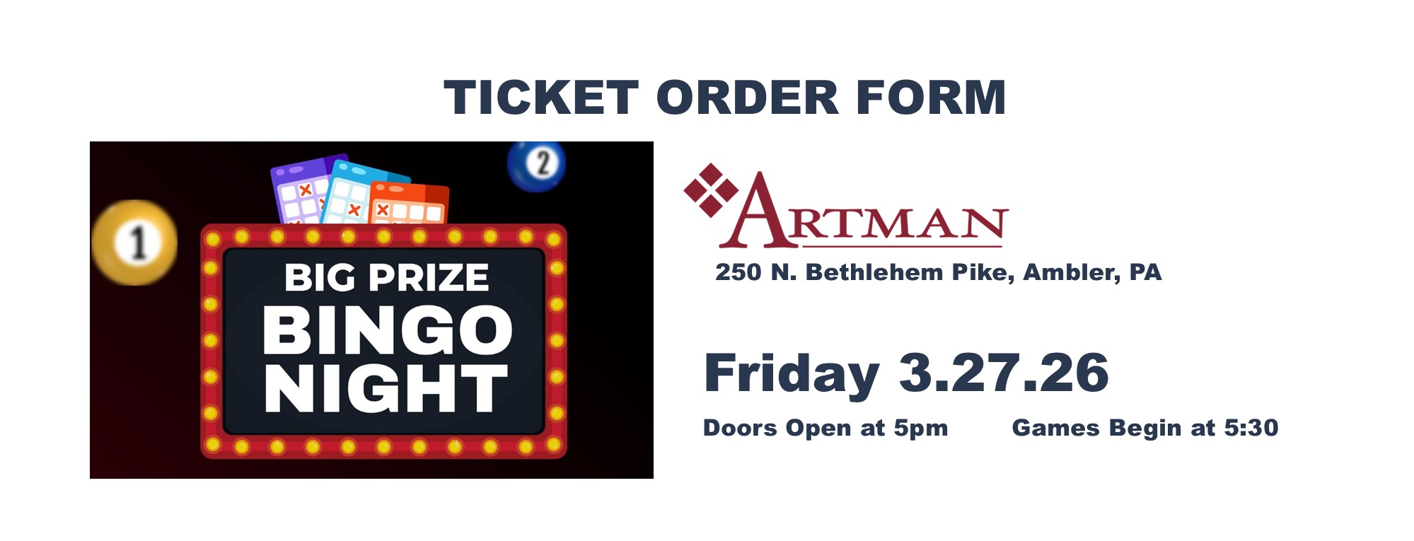Join us for a fun evening of Bingo while supporting Artman’s Benevolent Care Fund.